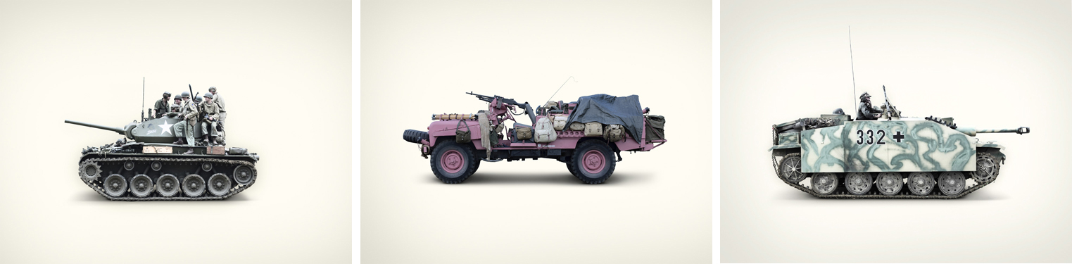 Re-enactors in 2009. The book is about people who step out of their daily lives to transform themselves into characters from the first and second World War. The portraits are mostly three-quarter profiles with a neutral background which let's the audience focus on the details of the costumes and the expressions of the portrayed. In the book we also find photographs of tanks used by the re-enactors and wide images of battlefields. Jim has won several awards and was featured in several exhibitions. The following images come from the series