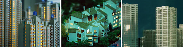 Xing Danwen, 1967, China, currently lives and works in Beijing. She has been taking photographs of maquettes since 2004. Xing then takes pictures of herself playing various characters to add them to the image of the maquette. The prints are more than two meters wide, that's when the viewer can see the stories that unfold on the photograph. To see detail examples go to her website. The following images come from the series Urban Fiction, Duplication and Disconnexion.